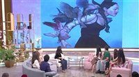 وخلال اللقاء سئلت مها الصغير من مني الشاذلي حول إحدى اللوحات، لتجيب بتردد: "اللوحة دي اسمها إيه، والله أنا كنت برسم بمشاعري أكتر وبحاول ألاقي مشاعر"، وأضافت: "والله دا حال سيدات كتير، إن هما بيبقوا عايزين يبدعوا، أو يبقى ليهم مكانة، بيبقوا حاسين إنهم عايزين ينطلقوا، ومتكبلين".