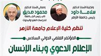 تطلق كلية الإعلام بنين بجامعة الأزهر، السبت المقبل مؤتمرها الدولي السادس تحت عنوان: «الإعلام الدعوي وبناء الإنسان»، برعاية كريمة من فضيلة الإمام الأكبر أ.د أحمد الطيب، شيخ الأزهر الشريف، وبحضور عدد من كبار القيادات الدينية والأكاديمية؛ حيث يشارك في الافتتاح كلٌّ من: وكيل الأزهر الشريف أ.د محمد الضويني، ووزير الأوقاف أ.د أسامة الأزهري، ومفتي الجمهورية أ.د نظير عيَّاد، ورئيس جامعة الأزهر أ.د. سلامة داود، ونائب رئيس الجامعة للدراسات العليا والبحوث أ.د. محمود صديق، وعدد من عمداء الكليات، إلى جانب نخبة من الباحثين والمتخصصين في الإعلام والدعوة وعلوم الاتصال.